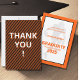 This orange striped Graduation Thank You Card is matching to the Graduation Invitation and other items in the collection. The back has a silhouette of a football player but can be changed to suit your graduate.