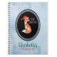 A personalised spiral notebook perfect for making Christmas lists or plans. Designed with a cute orange fox illustration inside a black oval. He is wearing a red santa hat and has festive green decorative accents on his tail and across his chest. Merry Christmas is also written inside the oval frame. The background is vintage looking blue grey colour with a faded dot pattern along the top and bottom.