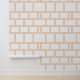 This pattern of orange squares and rectangles of varying but consistent sizes creates a striking repeating horizontal design. The orange is bright, so it can be a bold pattern in a smaller space, or a more subtle brick-like design in a larger room. It is both retro and modern, reminiscent of outdoor brick patterns while still being a clean design for indoors. In smaller spaces, this can work as the framing for a small art gallery. Used as a type of wainscoting along the lower wall, the rectangles create frames for art work and photos of friends and family so that your smaller children can see them. Invite elementary-aged kids to create small pieces of their own art within the rectangles. Or hang these up higher on a wall so that your teen or college dorm student can create their own art collage of different items. Design description: Horizontal stripes of orange rectangles with white interiors. The rectangles range in size, but most are wider than they are tall, some are nearly square. Across a row, the rectangles are a consistent height, so that your eye moves across them smoothly. Within a row, the rectangles have different widths. Every fourth row, there is a taller group of rectangles. The pattern repeats so that our eyes and brains are comfortable with it, but there are enough different sized rows and rectangles to create visual interest.