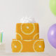 Custom wrapping paper featuring big orange fruit slices pattern.