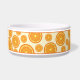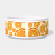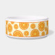 Destei's cartoon illustration of an orange fruit slice as a pattern. There is also a personalizable text area for a name. This fruity design is ideal for pets with fruit theme names such as "Orange", "Clementine" or "Satsuma", for example. The design is also great for the warm summer months to add some decorative detail to any pet's eating area.
