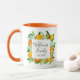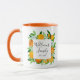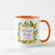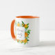 Sip in style with this botanical mug featuring orange fruits and flowers in a watercolor floral frame. A modern elegant summer gift with customisable calligraphy script! Perfect for housewarmings or summer weddings.