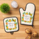 Orange Fruits and Flowers Summer Floral botanical Oven Mitt & Pot Holder Set