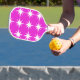 Stand out with this hot pink Pickleball paddle. Select the ‘example name’ and change it to the intended player’s name. You also have the option to delete the name or create other text such as a team name.