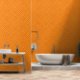 This diamond wallpaper features an orange geometric pattern. A great way to brighten up the bedroom, bathroom, shower room, living room, hallway or office. Matching decor available.