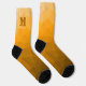 Orange geometric mesh pattern Monogram Socks. Personalise gift for him with custom initial and name.