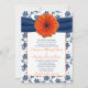 Orange Gerber Daisy Navy Floral Wedding Invitation