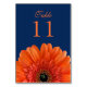 Orange Gerbera Daisy Navy Blue Wedding Table Number