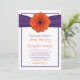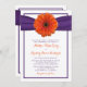 You can pesonalize the text and background colour on this orange gerbera daisy, purple ribbon wedding invitation. With changes to the text, this would make a really nice invitation for any other special occasion as well. You can also change the paper type. There are a variety of paper types to choose from and this design would look great with many of them. To change the text, use the personalise option. For more extensive changes, such as changes to the font, font colour, font size, text layout or background colour, use the customise it option. The colours on this invitation are orange, dark purple, and white. NOTE: This invitation is a flat printed design without any raised or 3D embellishments.