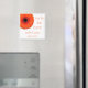 Plain white magnet with orange gerbera daisy and wording of your choosing.