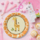 Giraffe Plate. Features our cute giraffe and an orange/soft yellow colour. Perfect for baby shower, birthday, or any occasion.