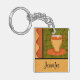 Orange Gold Green Coffee Cup Art Custom Name Key Ring