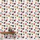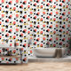 This fun wallpaper features polka dots in orange, gold, black and stripes. The perfect accent addition to your home decor.