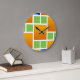 Square color combinations of gradient golden yellow orange, lime green and blue color squares in tiles.