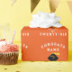 Creative graduation giftwrap for Class of '25 grad featuring black graduation cap with gold tassel on orange background. To personalise edit text to add his or her name.