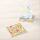 This cute coaster features a colourful fruit pattern with grapefruit and orange slices, and small green leaves.