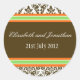 Orange green and brown damask wedding sticker which can be used as an invitation seal.