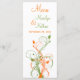 This orange, olive green, and white floral inter-twined vines menu card matches the wedding invitation shown below. It is designed on a rack card so the front is glossy and the back has a matte finish. If you would like a menu card on invitation paper to match your invitations, or if you have any requests for additional items or changes, please email niteowlstudio@gmail.com with your request.