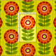 Introducing a captivating seamless pattern that seamlessly merges the charm of a bygone era with a contemporary twist. This enchanting design showcases a tapestry of orange and green retro flowers, each petal a nod to the vibrant aesthetics of yesteryear's. Against a soft and soothing pale yellow backdrop, the flowers pop with vivacious energy, evoking a sense of nostalgia while staying fresh and relevant.