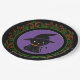 Orange Green Black Cat With A Witch Hat Halloween Paper Plate