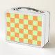 Orange Green Citrus Chequered Gingham Pattern Metal Lunch Box