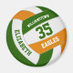 This volleyball themed magnet with custom team colours features the realistic image of a volleyball with green, orange and white panels upon which you can customise the player's name & jersey number plus school or club name and mascot name in a varsity letter style font - by katz_d_zynes