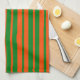 Orange Green Stylish Stripes Pattern Design Tea Towel