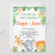 Orange Green Twins Party Animals Safari Birthday Invitation