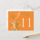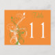 This reversible orange, olive green, and white floral table number postcard matches the wedding invitation shown below. **You MUST change the number 11's to each of the table numbers you need, add it to your cart, and then return and repeat the process until you have all the individually numbered cards that you need in your cart. Stand it on a small easel, or in your centerpieces. If you need assistance, email niteowlstudio@gmail.com.