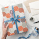 Orange & Grey Geometric gift wrap. Interesting honeycomb multi-coloured pattern.