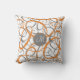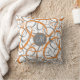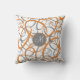 This funky geometric pattern throw pillow features intertwined orange and dark grey oval shapes on a white background - personalise with her monogram on a coordinating grey circle pendant - by katz_d_zynes
