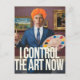AI generated art of a orange haired man with a painting that says "I Control the Art Now"