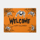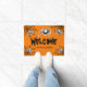 Orange Halloween door mat with creepy spiders. Spooky Halloween welcome doormat for home entry, porch, hall, shop, store etc.