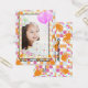 Orange Hand Print Girl or Boys polkadot Birthday Photo Cards - Multi Coloured Dots & Orange Hand Prints Pink Ballons