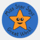 An orange happy cartoon star. The text reads "Miss Star Says Great Work!" and can be changed for a custom name/message. Ideal for teachers as rewards for students.