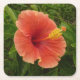 Orange Hibiscus Flower Tropical Floral Square Paper Coaster