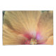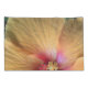 The original photograph by MaeFlowers on this Pillowcase Set is a closeup of an orange hibiscus flower. The flower petals are a yellow orange colour, turning pink into deep red at the flower's centre. We can see the details of nature's pollen system, soft red dots and tiny yellow florets. The veins in the petals can be seen spreading outward their ruffled edges. A bit of leafy green background sets off the ruffles.