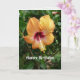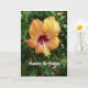 The card front features the image of an orange tropical hibiscus flower with a red throat. This is a beautiful card for nature and flower lovers and gardeners.