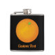 The flask itself is fine. It’s a cheap flask, obviously bought in bulk, however am prepared to overlook that. Given that it is a personalized item, I would have liked to have seen gift boxing instead of the generic packaging. Terrible printing, and/or quality. It’s a cheap, tacky vinyl. It is not cut straight and is also applied in a way that it is overhanging the bottom, causing the glue to catch on items and it will eventually roll and tear, damaging the wrap.