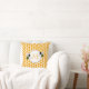 Modern throw pillow features an orange geometric honeycomb pattern and a customisable orange monogram with bees. This cute pillow is great for kids room or nursery.