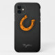 Cool, sleek, Orange horseshoe clip art on black and dark grey textured background. Great gift for cowboys and cowgirls that love horses! Add your name or text to personalise it! Images used on this item are licensed and © Graphics Factory.com