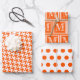 Orange Houndstooth Monogram Polka Dot Wrapping Paper Sheet
