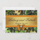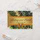 Orange Hunting Themed Camo Wedding Invitations -- features a hunting camo print that consists of leaves, bark, grass, twigs and more. A printed gold band trimmed in orange graces the front and back. The front also features a matching printed bow with a diamond embellishment. These hunting camo invitations are set to high quality basic card stock; however, you can change the stock to linen, felt (embossed), recycled, and several metallic shades if you would like under number 2 (choose your style, size & paper type) below the orange add to cart button. A list of the additional costs for a fancier card stock are displayed also under that option. Each invitation comes with a fitted white envelope.