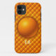Juicy orange illustration on orange patterned background with customisable initials or name.
