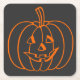 Orange Jack-O-Lantern Pumpkin Outline on Black Square Paper Coaster