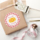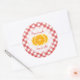 Customisable retro stickers for homemade orange jam, mandarin jelly or preserves jars with fresh ornage slices on red and white gingham tablecloth pattern. The stickers can personalise the lid or the jar itself. Other fruits jam stickers and labels also available!
