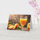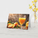 Fresh sliced oranges and glass of juice on a wooden tray for get well soon.