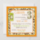 Safari prints, giraffe, zebra, and cheetah and a polka dot pattern, with monkey hanging on a vine and 3D look tags, bows, trims birthday invitation card for a three year old.
