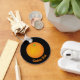 A whole orange. Custom background colour. Custom text on both sides.