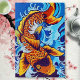 Tattoo style orange koi fish in a backdrop of blue water all around the koi fish